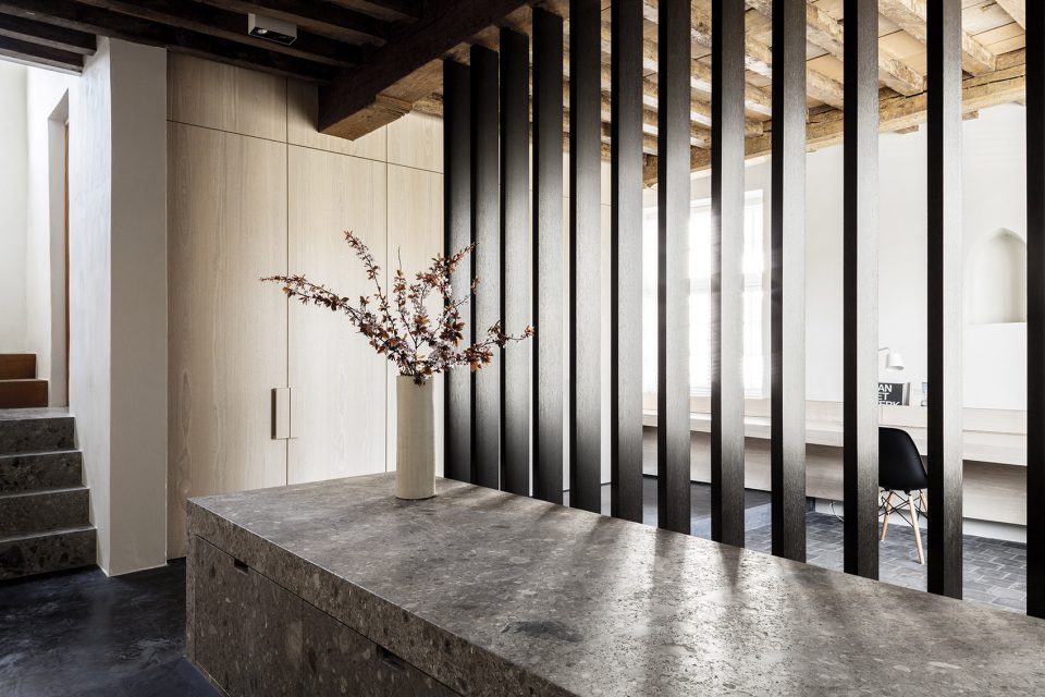 在一层有限空间里,历经风雨洗刷过得原木,